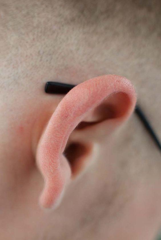 Tears often occur from heavy earrings, accidental snagging, or trauma, leading to elongated or split holes in the earlobe.