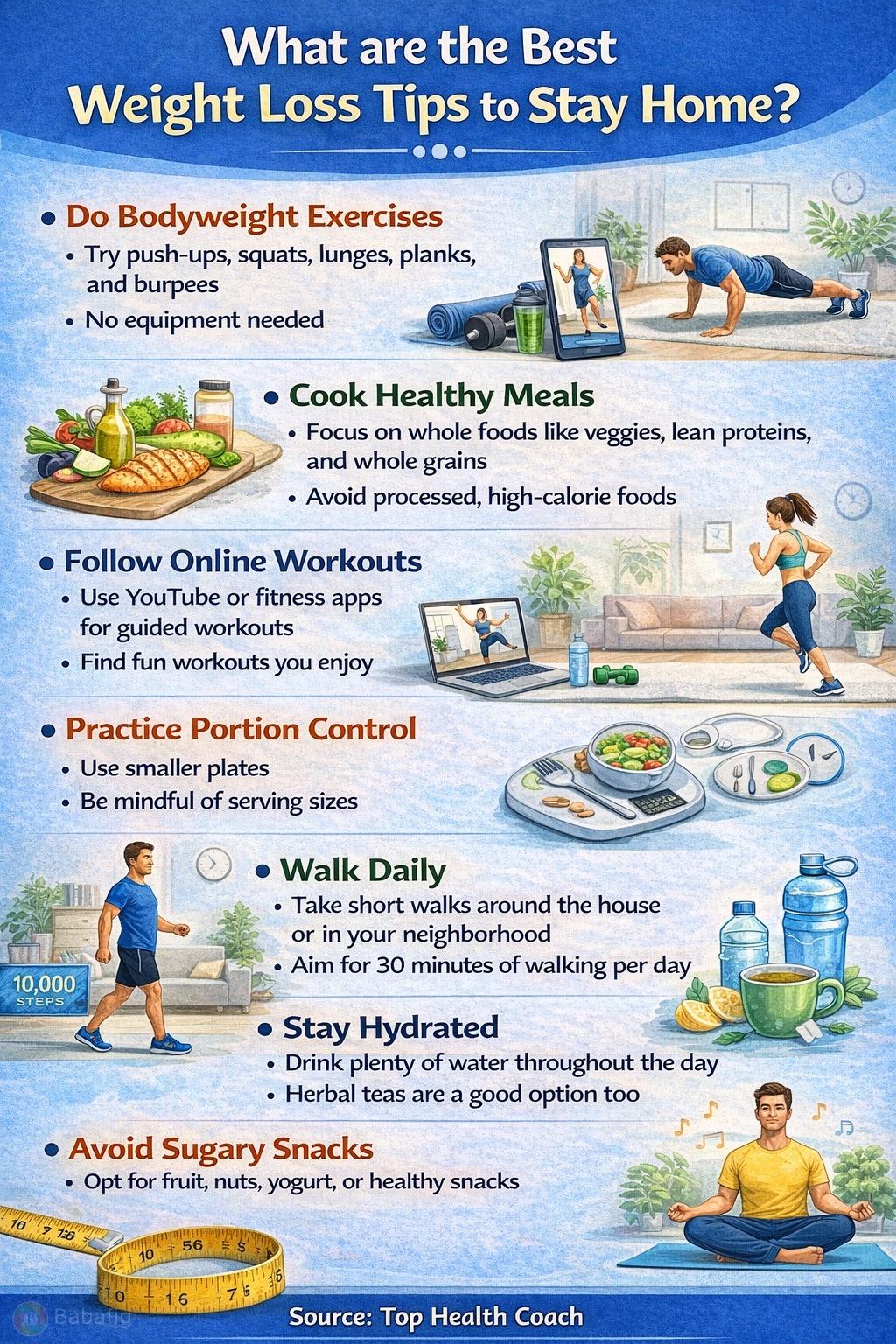 Stay active every day, choose healthy foods, reduce sugar and junk food, and drink plenty of water. Consistent habits and proper sleep are the real keys to sustainable weight loss.